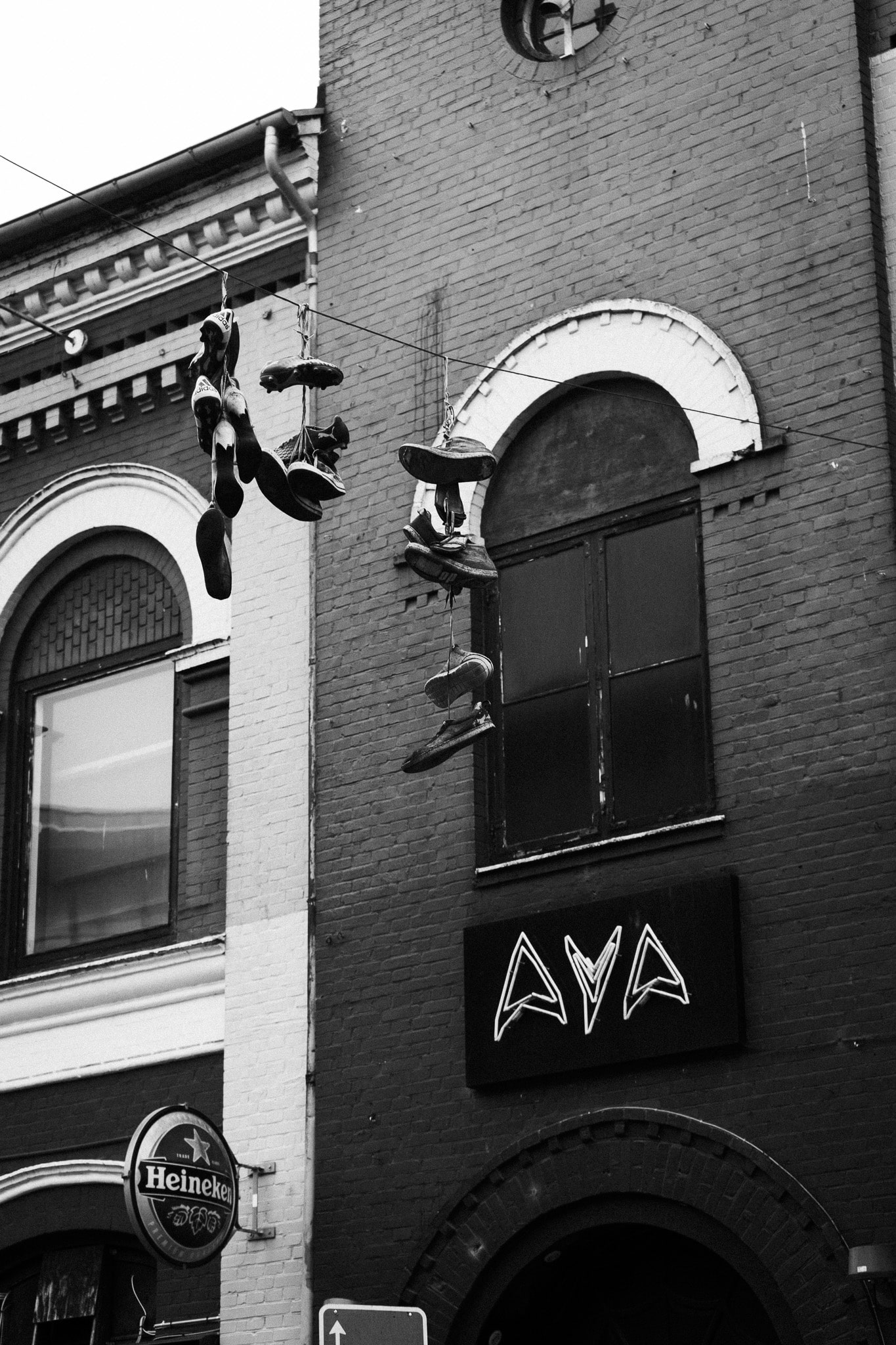 Den øverste i sans serif er enkel og minimalistisk, mens den nederste har en rå graffiti-stil, som kan give et uofficielt udtryk og skabe tvivl om, hvorvidt det er en del af logoet. Dette sker særligt, da logo er skrevet direkte på facaden og ikke har et designeret skilt, der adskiller det fra bygningen.