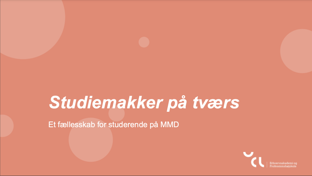Studiemakker på tværs er et koncept, der skaber sammenhold på tværs af semestrene. På tredje semester er det vores tur til at hjælpe et hold første semestre, med at finde deres plads og vejlede dem på studiet.