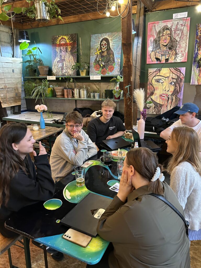 Vi mødtes på Storms Pakhus og havde nogle rigtig hyggelige timer, hvor vi snakkede med første semestrene om deres første projekt. Vi kiggede på deres redesigns og snakkede om deres udfordringer og spørgsmål i forholdt til, hvordan de skal gå videre med deres projekt. De brugte også noget tid på at besvare nogle spørgeskemaer, som vi havde til dem og snakke med os, om vores projekt.