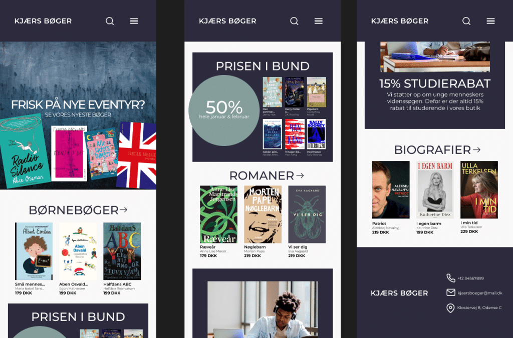 Herefter, lavede jeg prototyper, baseret på mine wireframes.
